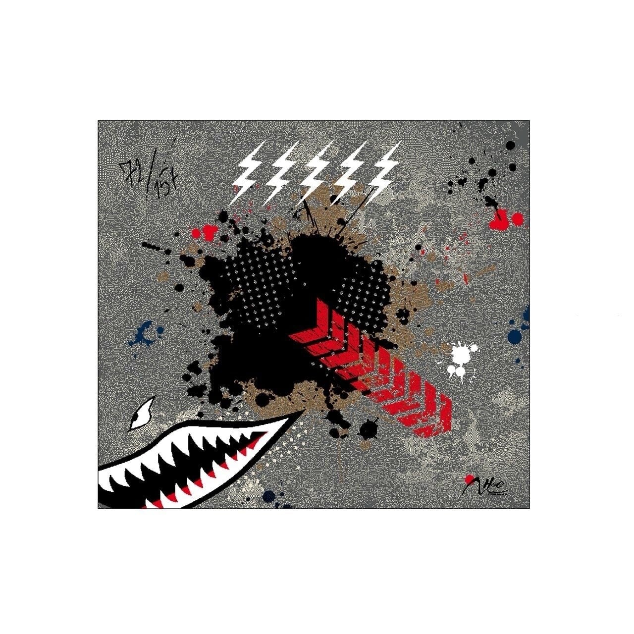 ナイロン製のパイル生地に特殊な印刷技法でサメを表現しています。
