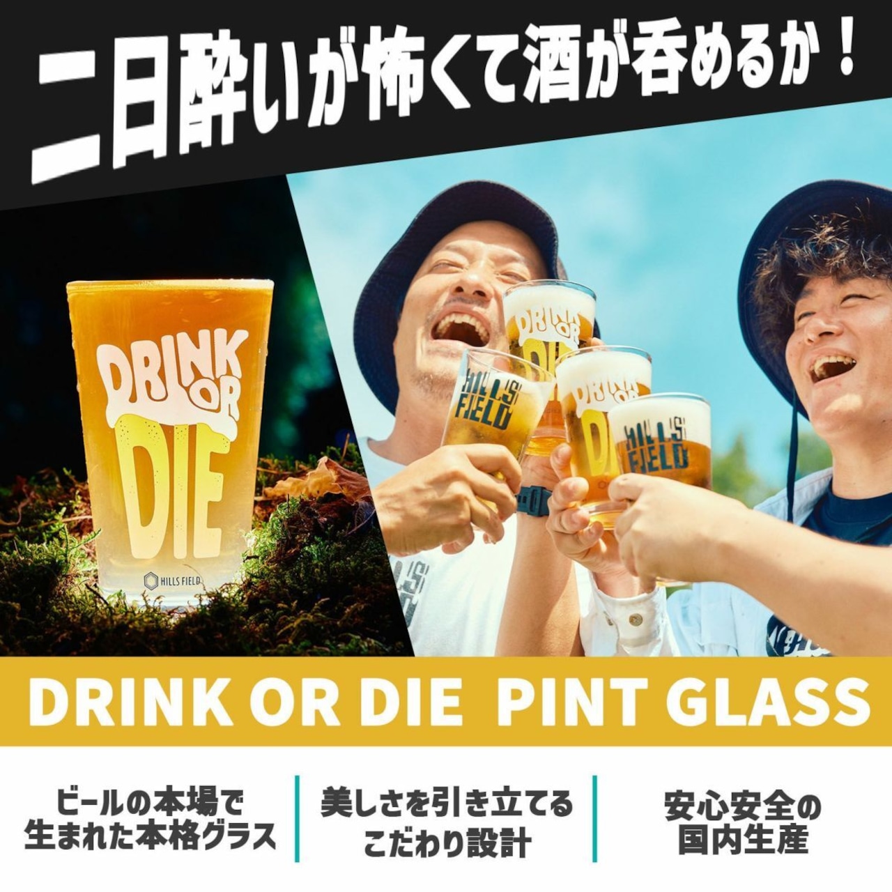 HILLS FIELD _ DRINK OR DIE パイントグラス