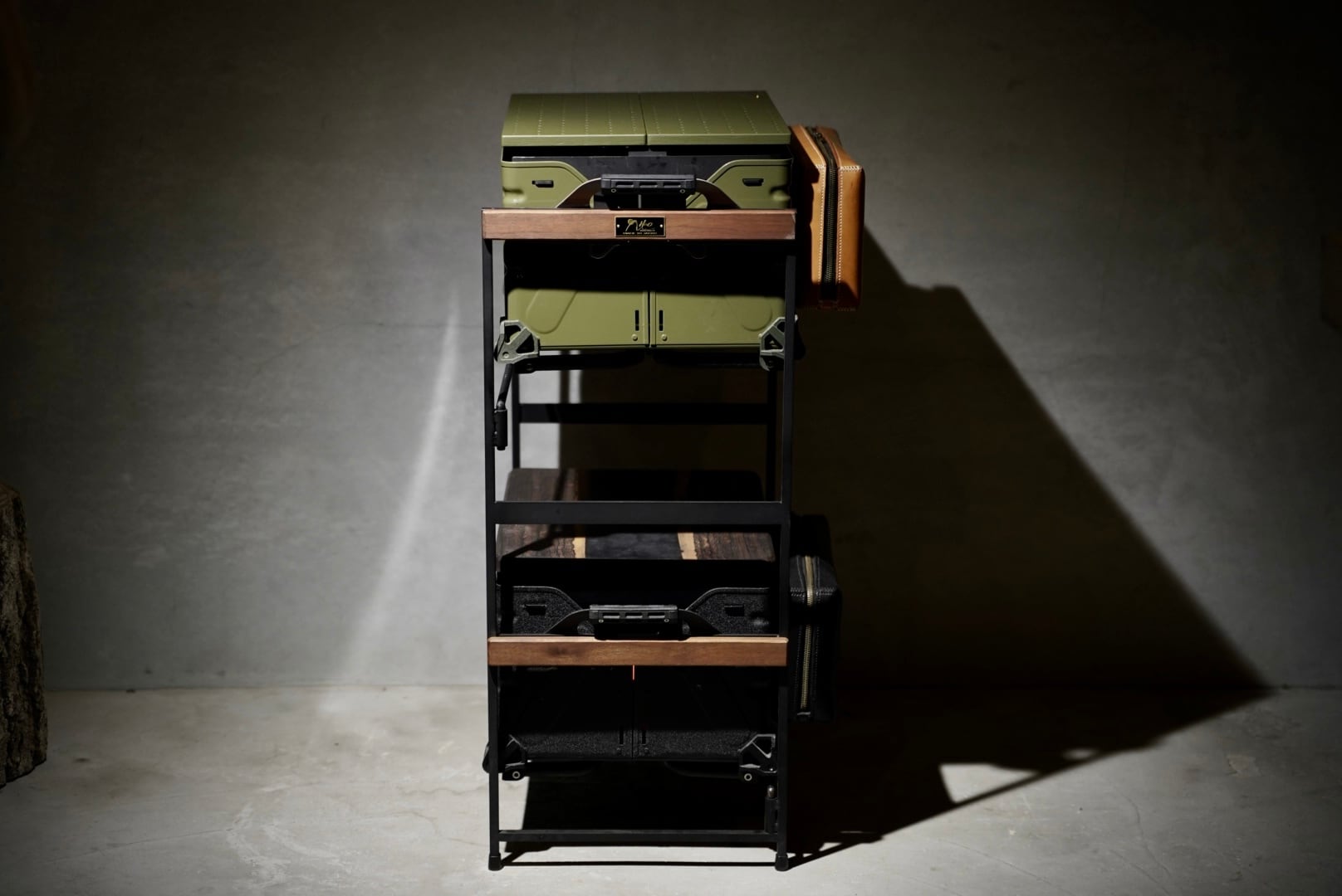H&Oのウィングトップを装着したシェルコンでキャンプギアを置いたりランタンなどを飾ったりと便利な棚としてもご使用可能です。