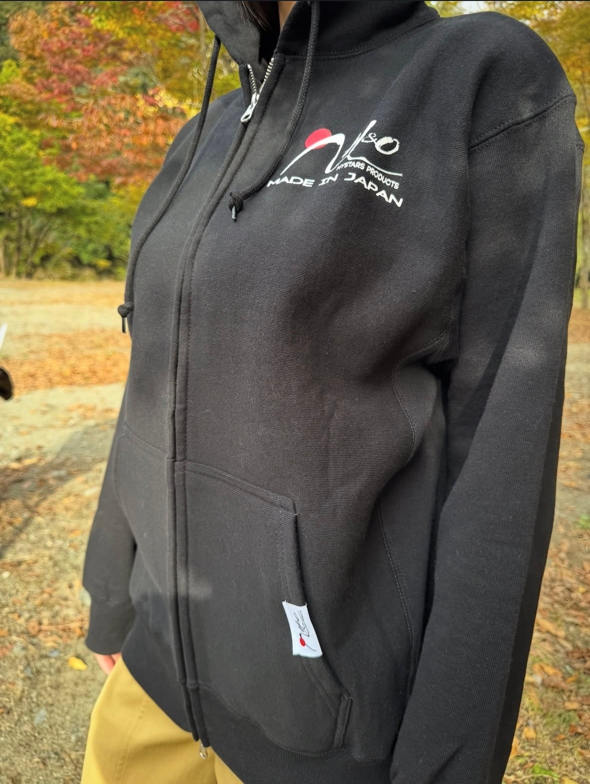 12オンス厚生地に生地の内側は裏起毛となっており、とても暖かい着心地で二重フードにより強風時の風よけなどで被る時もしっかりし