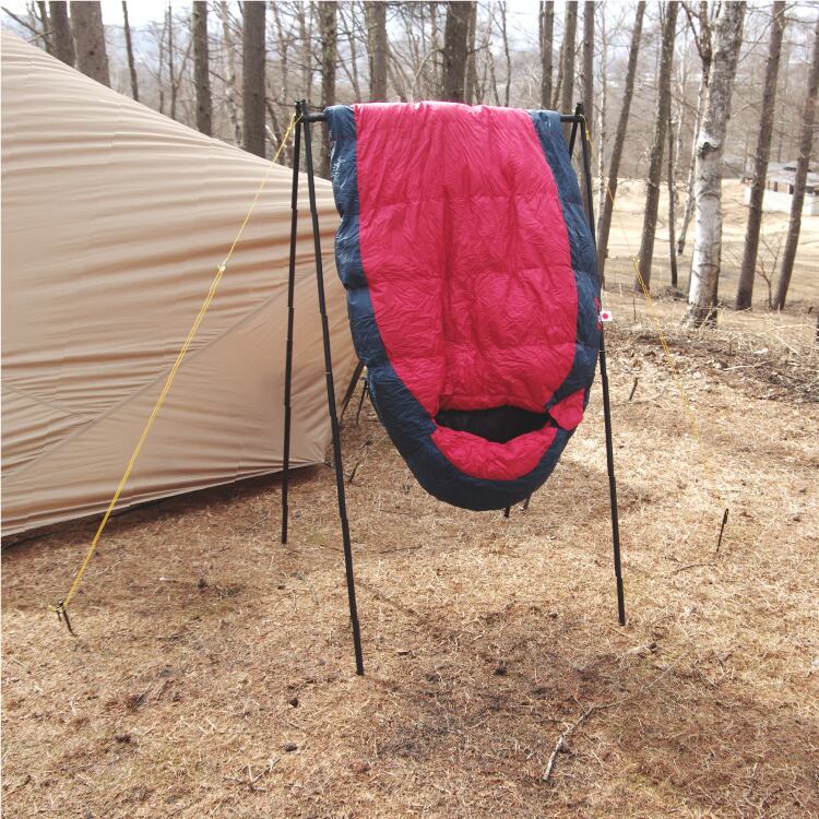 シェラカップ、火吹き棒にランタン、ナイフにフライパン。ダウンにバッグ。
