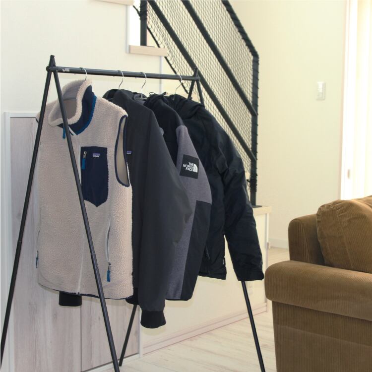 高さも変化できるSNIPE HANGERは、1台でM、L、XLサイズのハンガーラックとして使用可能。